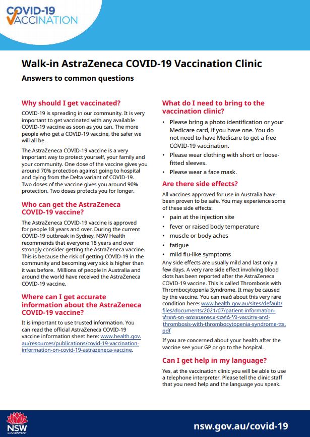 Vaccination is FREE, NO BOOKING NEEDED and NO MEDICARE NEEDED.
